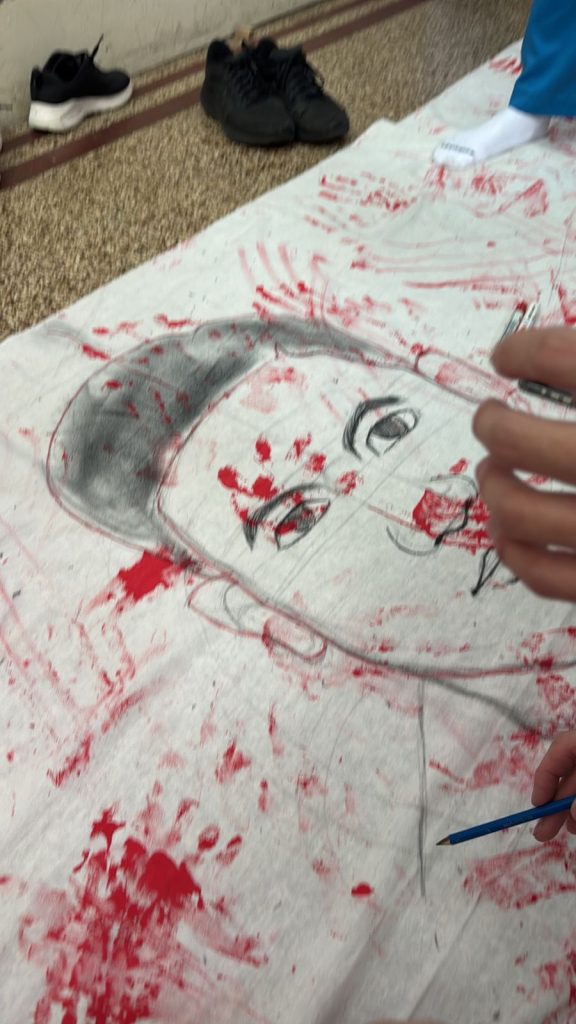 Pada Jumat, 6 Februari 2026, kami melaksanakan kegiatan menggambar sketsa pada kain yang akan digunakan untuk flashmob. Tahap ini merupakan langkah awal sebelum proses pengecatan dilakukan. Kami harus memastikan desain yang dibuat sesuai dengan tema drama serta terlihat jelas ketika ditampilkan di atas panggung.