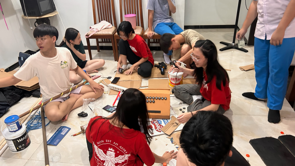 Pada tanggal 7 November adalah hari kerja sama sie dekor pertama untuk membuat properti. Kami memilih untuk mengerjakannya di tempat yang sepi di sekolah. Properti yang kami awal buat adalah daun-daun untuk pohon yang terbuat dari kertas krep hijau tetapi kemudian diganti menjadi daun-daun untuk semak-semak.