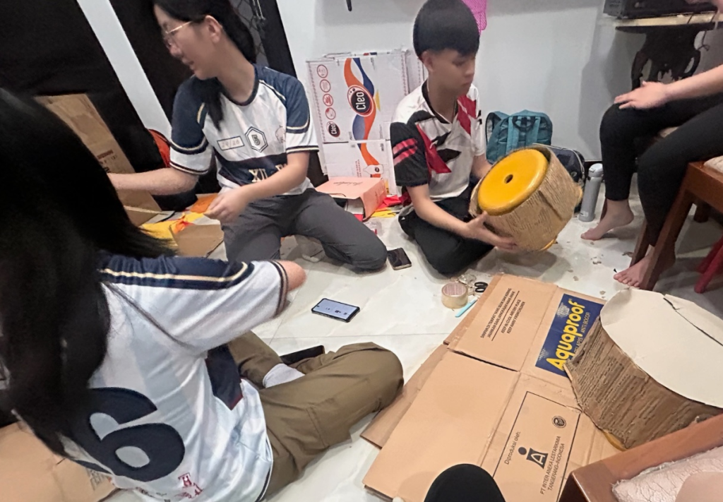 Tanggal 3 Desember 2025, kami melanjutkan membuat dekorasi api unggun dan tongkat untuk kepala suku Dayak dan anak anak tari lainnya. Saya berkontribusi dalam membantu membuat dekorasi terutama api unggun dan membantu mengecat tongkat-tongkat yang ada serta memberi ukiran pada tongkatnya. Kendala yang saya dapatkan hari ini adalah selama mengerjakan adanya perubahan dalam perkiraan properti yang harus dibuat sehingga akhirnya kami harus memikirkan ulang lagi bahan-bahan yang sudah terlanjur dibeli supaya bisa digunakan agar tidak sia sia. Nilai yang saya dapatkan hari ini adalah komunikasi merupakan kunci untuk mencapai hasil yang bagus.