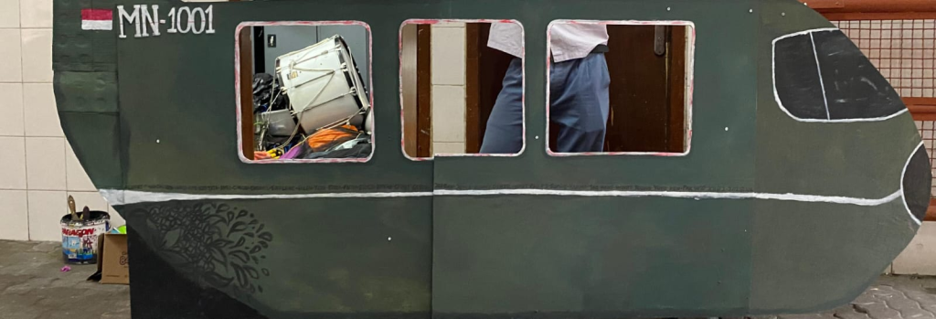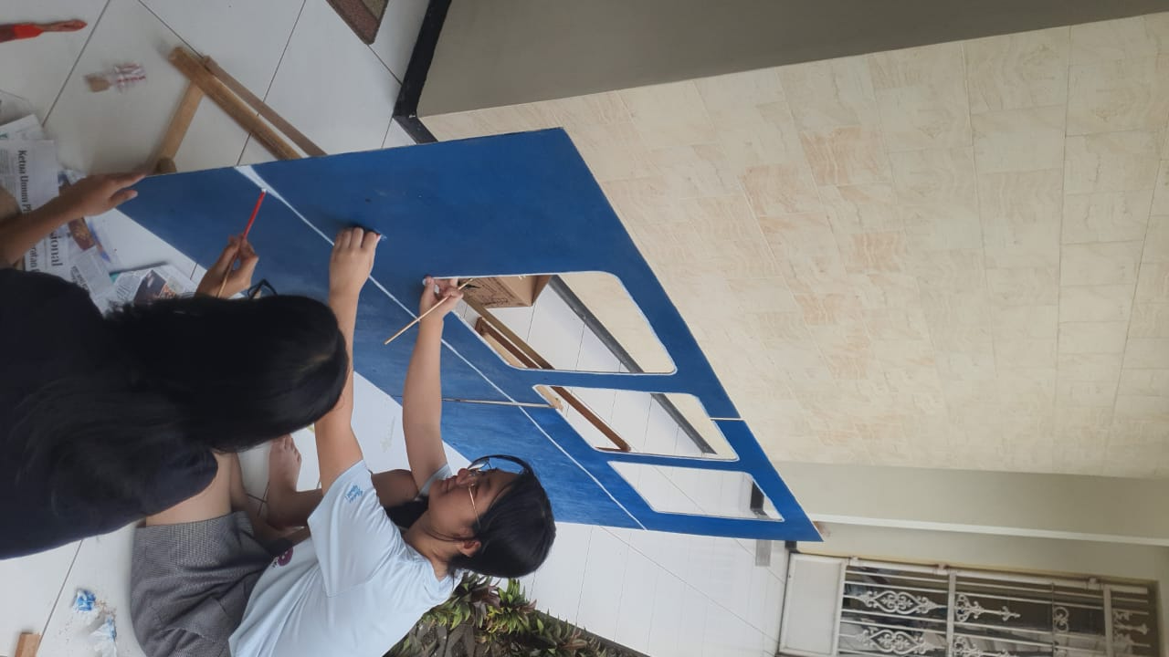 Tanggal 18 Desember 2025, kami meneruskan pembuatan dekorasi dengan memotong triplek yang akan digunakan sebagai tampak depan pesawat menjadi memiliki jendela dan mengecatnya kemudian menempelkannya menjadi satu dengan rangkanya. Kendala yang saya alami ketika melakukan ini adalah ketika melakukan penempelan triplek dengan rangka menggunakan paku dan sekrup saya harus sangat sabar supaya tercipta garis sekrup yang lurus menyerupai bagian pesawat aslinya. Nilai yang saya dapatkan selama melakukan kegiatan ini adalah kesabaran adalah kunci dan awal bagi kesuksesan.