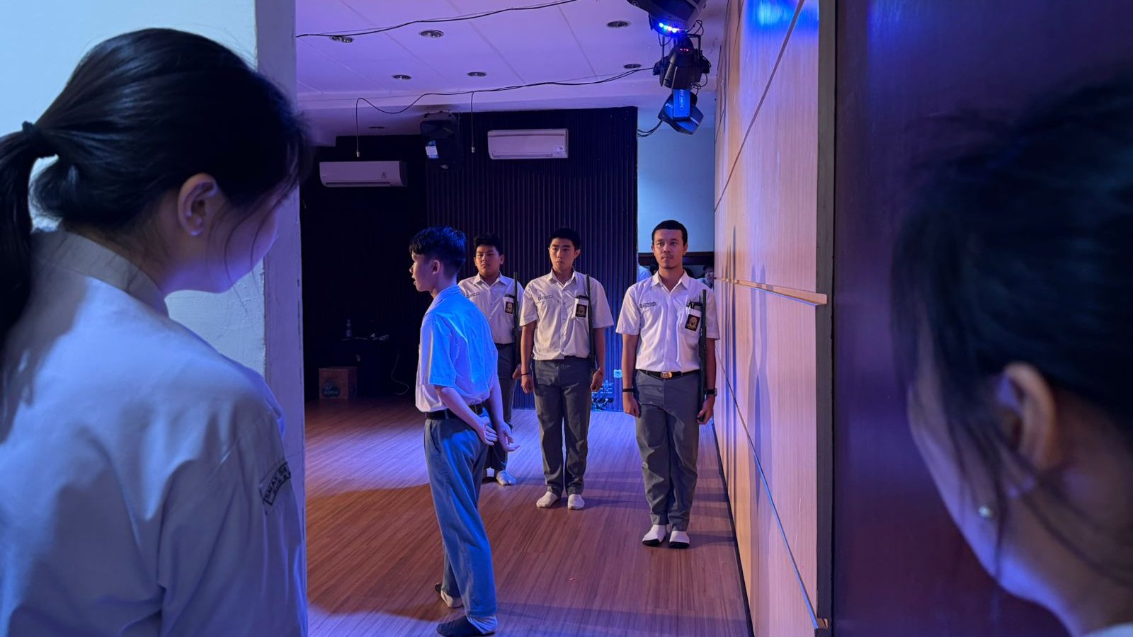 Pada periode Desember hingga Februari, kami memasuki tahap latihan pementasan. Pada awal bulan Desember, latihan masih cukup ringan dan berfokus pada pembacaan naskah serta pemahaman alur cerita. Namun, semakin mendekati hari pementasan, latihan menjadi lebih serius dan intensif. Kami mulai memperhatikan detail-detail kecil agar suasana yang ditampilkan terasa lebih nyata dan mendukung jalannya cerita.