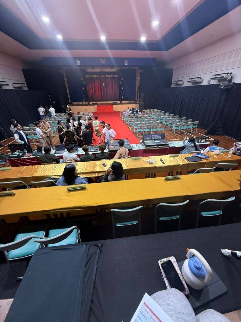 Namun, saya juga merasa takut dan tegang karena posisi spotlight berada di tempat yang cukup tinggi dan bagian belakangnya terbuka. Saya sempat khawatir terjatuh karena harus berdiri di area tersebut sambil tetap fokus pada pengaturan lampu. Untungnya, semuanya berjalan dengan aman. Meskipun menegangkan, pengalaman memegang dan mengatur spotlight secara langsung terasa sangat seru dan menjadi pengalaman baru yang mungkin tidak akan sering saya rasakan lagi.
