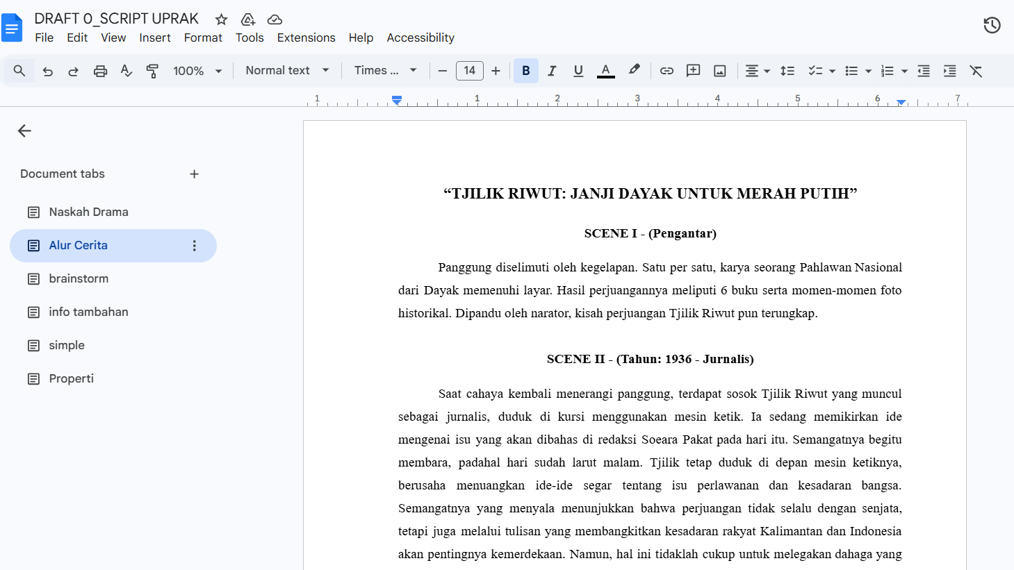 Saya sendiri mendalami karakter Tjilik Riwut. Dalam prosesnya, saya belajar memahami latar belakang, peran perjuangan, serta nilai yang ia pegang agar interpretasi karakter tidak sekadar permukaan. Hal ini melatih saya untuk lebih kreatif dalam mengolah informasi menjadi naskah yang tetap relevan dan bermakna.